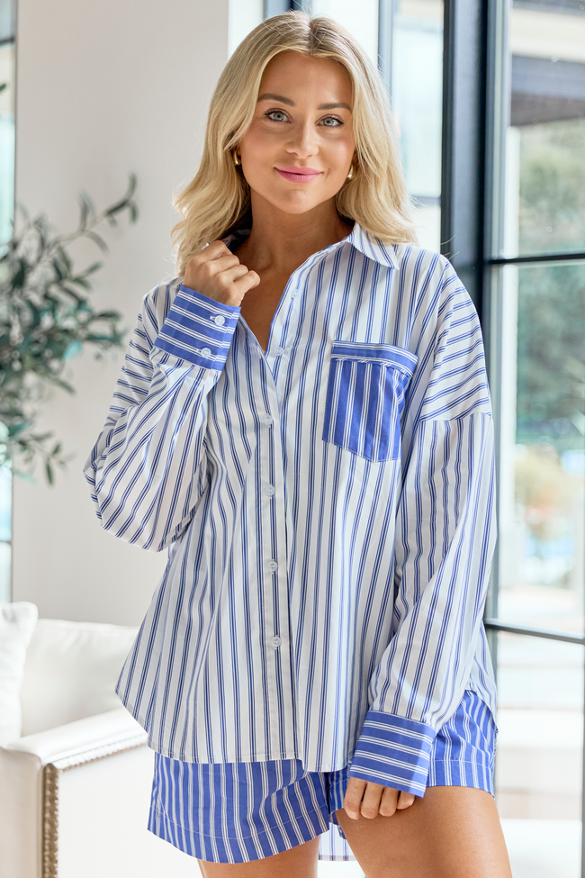 Pamela Button Down Blue and White Striped Shirt SALE
