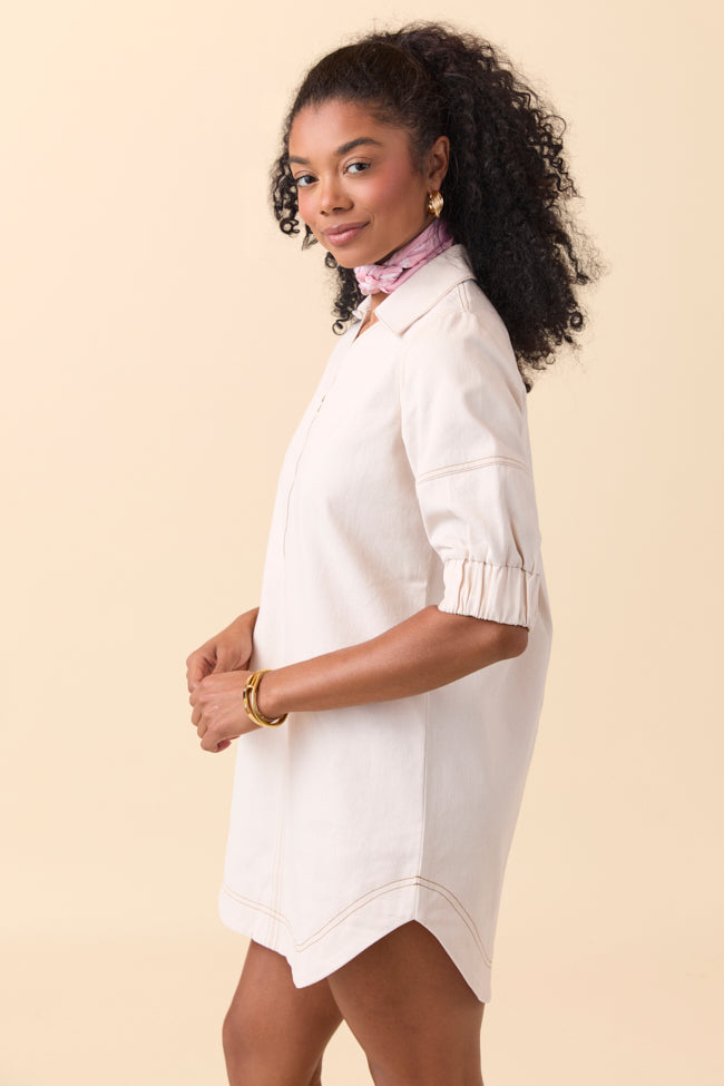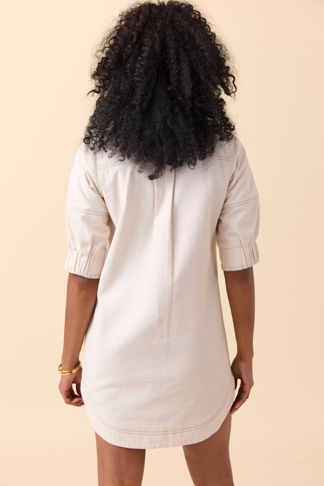 Rita Ecru Front Zip Mini Dress
